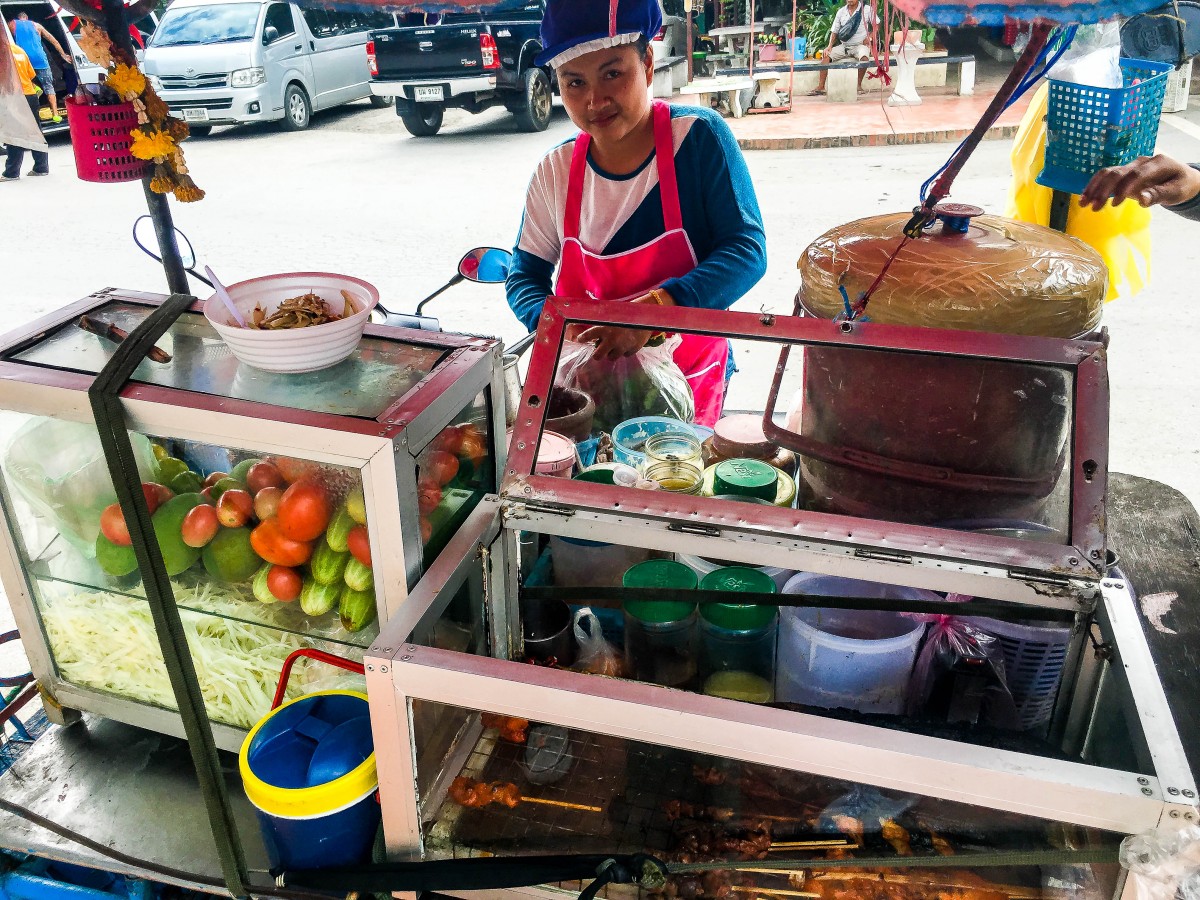 Refreshments are available at a cluster of canteens serving home-cooked fare at Wat Yai Chai Mongkol. Food vendors are also all around, from sellers of ice lollies to the famous Thai iced tea. Meat skewers and meals are available at some locations, such as at the Wat Lokayasutharam.