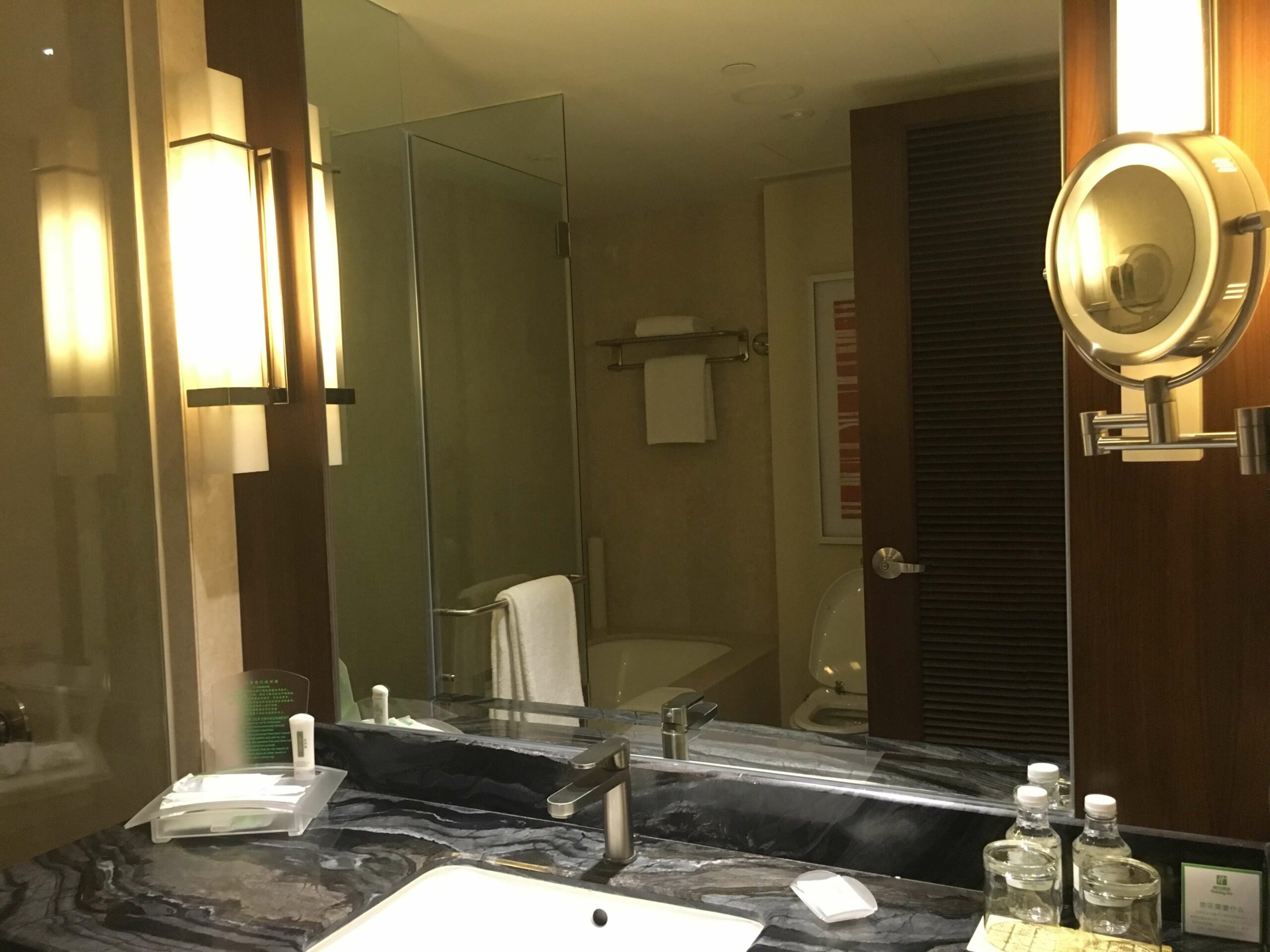 Holiday Inn Macau is located within the Cotai Strip—its entrance is connected to a sort of hybrid mall and casino complex. I couldn’t quite remember exactly where it was located in that vast area, but we did ask around and were led to the lobby with minimal effort. Once there, we checked in. To my surprise, they upgraded our room to a deluxe for free, since I am an IHG One Rewards member, so it was more spacious than the superior one we originally booked.
