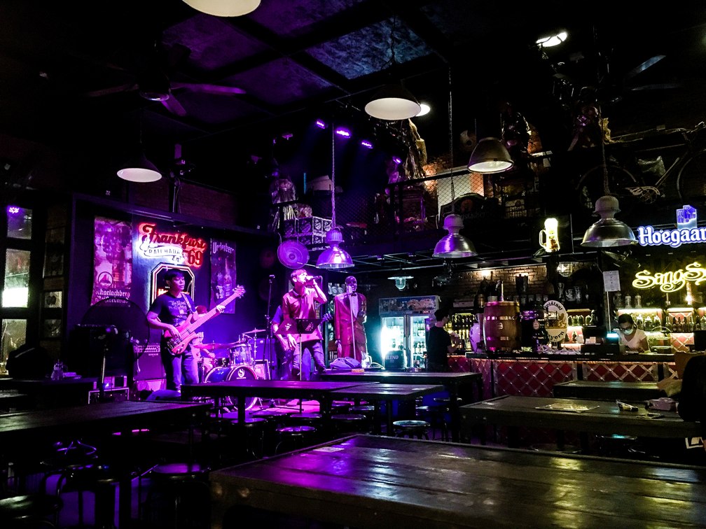 Grab a beer or order a whole bottle for sharing. Cover bands perform the latest chart-toppers, but if you’re a bit selective, other bars could otherwise meet your musical preference. If you’re into punk rock, metal, or hardcore, one of the bars along the market entrance are more suitable destinations.