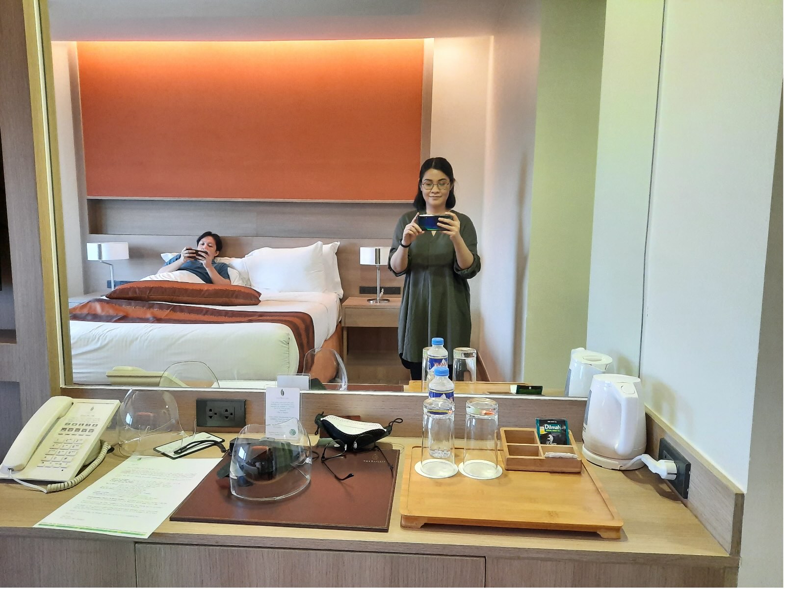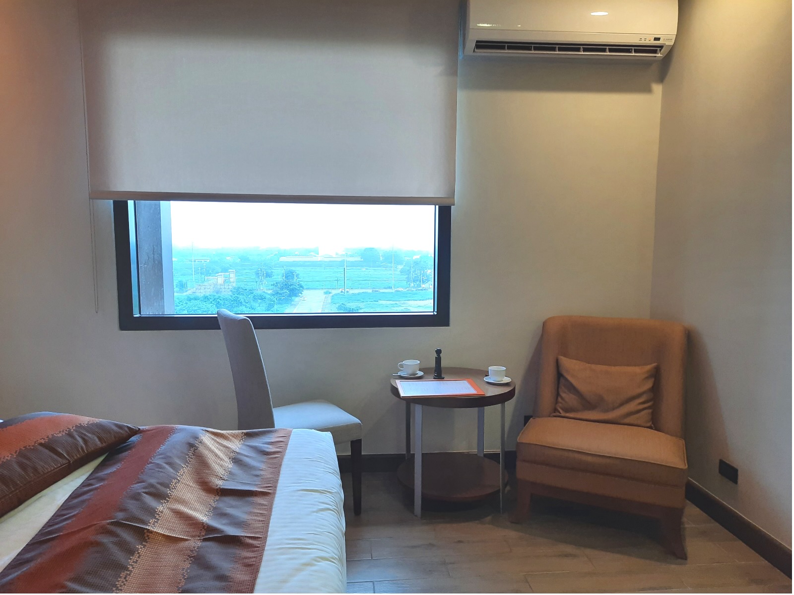 We were given a key card to open our room. Upon entering, we found the bathroom to our left and the closet to our right. The closet was so spacious, leaving more than enough room for travel luggages. It also contained an electronic safe for valuables. The room was well-pointed, with a tea-making facility, and a spacious and comfy bed. The window lets the light in and opens up to a calming view of green fields and the sunrise/sunset.