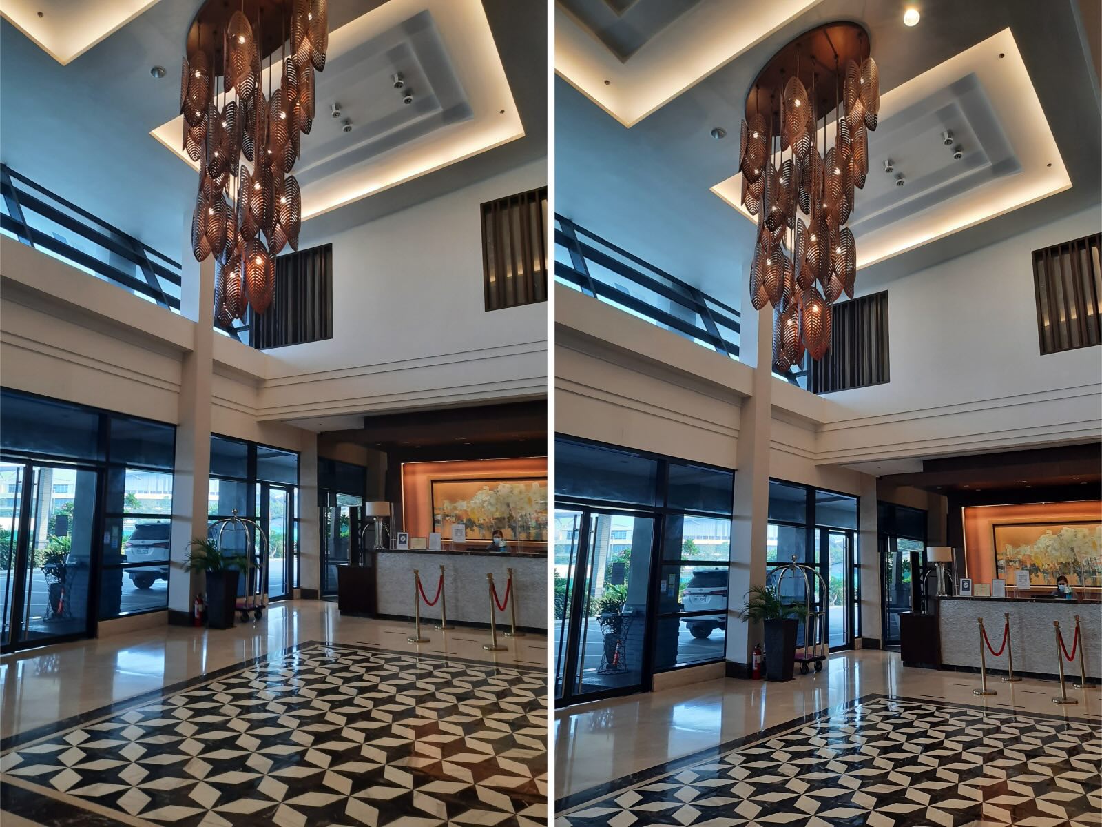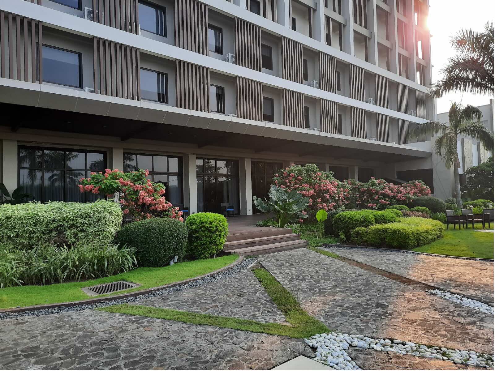 The hotel was beautiful from the outside. The facade was breathtaking. It stood proudly in the middle of a field, surrounded by lush greenery. Beautiful trees and shrubs lined the outside, and the hotel drop off area was really spacious. The ambiance really felt grand at the entrance, as we alighted the vehicle we hired.